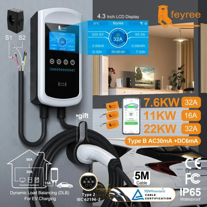 شارژر خودرو برقی دیواری Feyree 7.5kW | وایفایدار با لودبالانسر و RFID