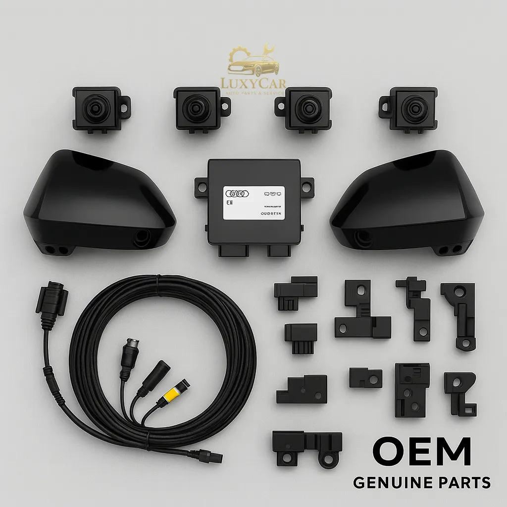 نصب دوربین ۳۶۰ درجه اورجینال آئودی Q5 شامل نصب ۴ دوربین اصلی، ۲ قاب آینه فابریک مخصوص سیستم ۳۶۰ و تمام تجهیزات OEM موردنیاز است. نصب کاملاً فابریک و بدون هیچگونه تغییر، برش یا لحیمکاری در سیمکشی انجام شده و سیستم پس از نصب کالیبره و برنامهریزی میشود تا دقیقاً مانند نسخه کارخانهای عمل کند.